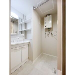 | オススメ | ○ ■-…2号室TYPEには脱衣所シャンプードレッサー横に棚がついています♪ |